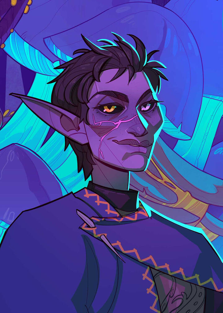 Race and class: Half-elf, draconic sorcerer (blue)